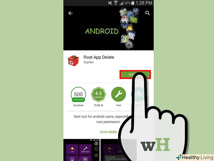 ІУстановите Uninstaller від магазину Google Play. після процесу вкорінення просто перезавантажте ваш телефон і встановіть це додаток від магазину Google Play-" Root App Delete " або відкрийте посилання у вашому телефоні, щоб встановити за допомогою інтернет - браузера вашого пристрою - https://play.google.com/store/apps/details?id=zsj.android.uninstallamp;hl=en, але також перевірте, чи є додаток сумісним з вашим пристроєм чи ні. Якщо воно не сумісно, тоді спробуйте інші програми для деінсталяції Root.