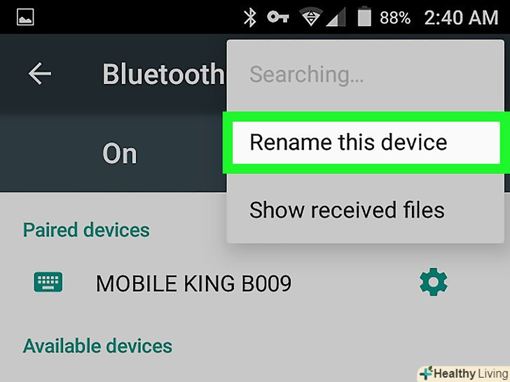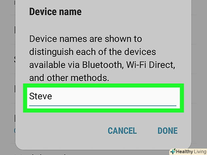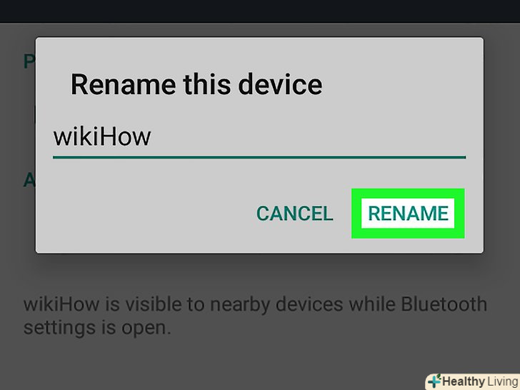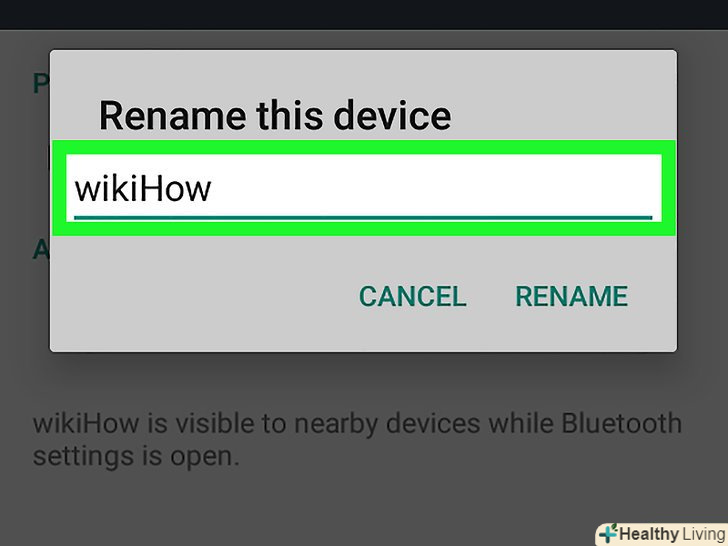 НатиснітьПерейменувати пристрій.ви знайдете цю опцію в меню. НатиснітьПерейменувати пристрій.ви знайдете цю опцію в меню.- Якщо вказаної опції немає, ви, швидше за все, не зможете перейменувати пристрій в Налаштуваннях Bluetooth. Спробуйте зробити це за допомогою програми "Налаштування" .
