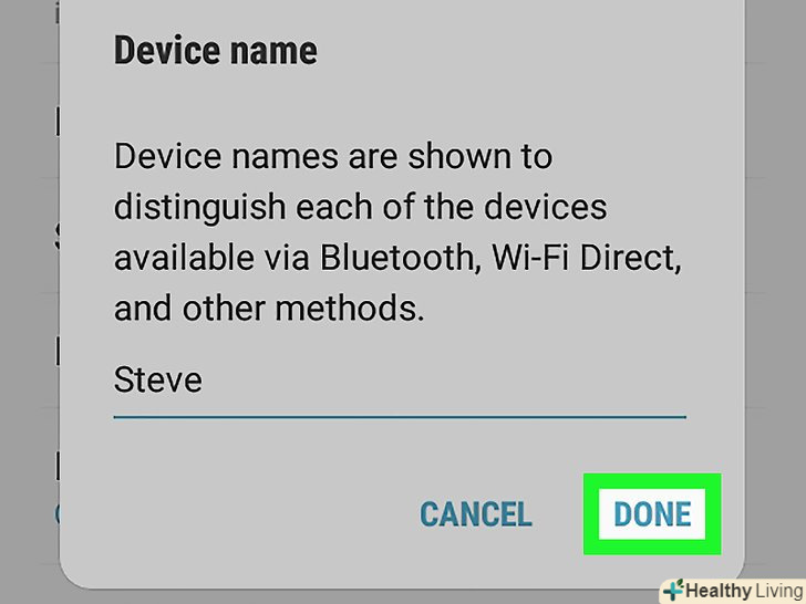 ТоркнітьсяOK або Готово.тепер нове ім'я буде відображатися, коли ви підключите пристрій до мережі Bluetooth (наприклад, до стереосистеми автомобіля).[3] ТоркнітьсяOK або Готово.тепер нове ім'я буде відображатися, коли ви підключите пристрій до мережі Bluetooth (наприклад, до стереосистеми автомобіля).[3]