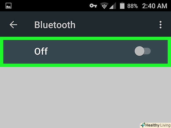 Торкніться сірого повзункау опції «Bluetooth». він стане синім Торкніться сірого повзункау опції «Bluetooth». він стане синім ; тепер Bluetooth. ; тепер Bluetooth. - Увімкніть Bluetooth, щоб змінити ім'я пристрою в мережі Bluetooth.
