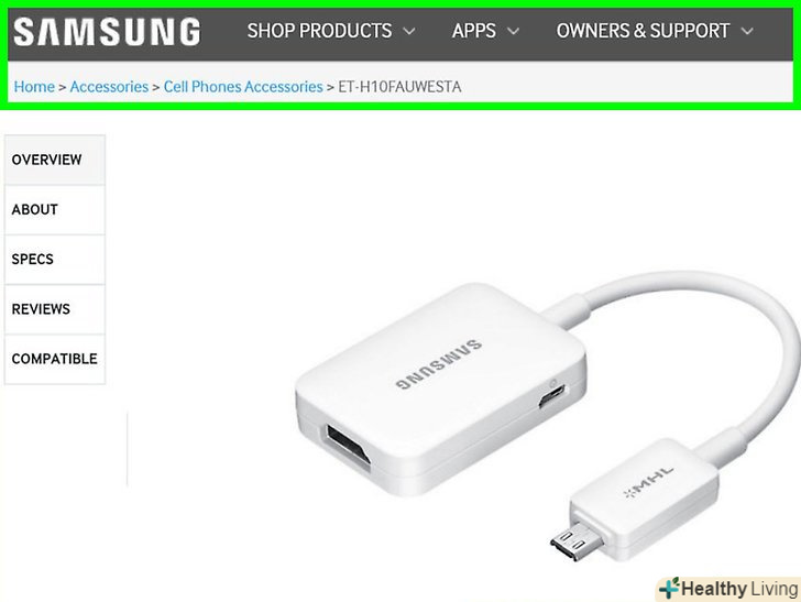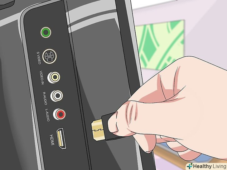 Купуйте адаптер MicroUSB-HDMI.адаптер являє собою коробку з кабелем; на коробці є HDMI-порт, а на кабелі-штекер MicroUSB, який підключається до зарядного порту пристрою. До цього адаптера підключається HDMI-кабель, який потім підключається до телевізора. Купуйте адаптер MicroUSB-HDMI.адаптер являє собою коробку з кабелем; на коробці є HDMI-порт, а на кабелі-штекер MicroUSB, який підключається до зарядного порту пристрою. До цього адаптера підключається HDMI-кабель, який потім підключається до телевізора.- Компанія Samsung продає HDMI-адаптери для своїх пристроїв, але в магазинах електроніки або в комп'ютерних онлайн-магазинах можна знайти дешевший адаптер стороннього виробника.