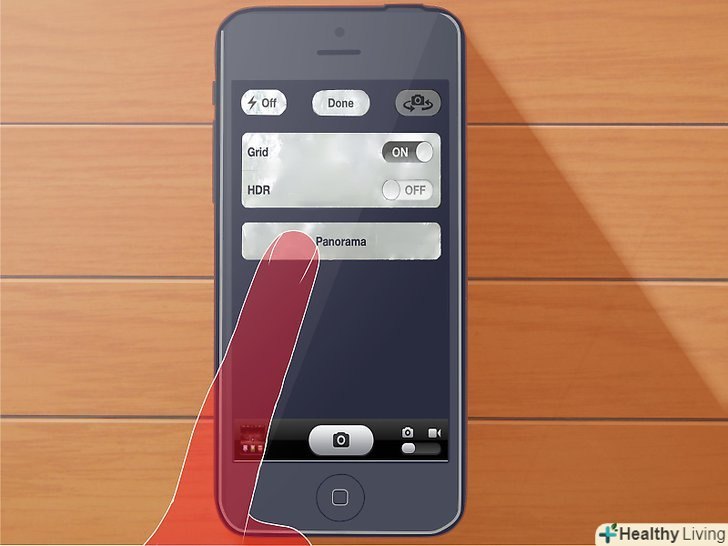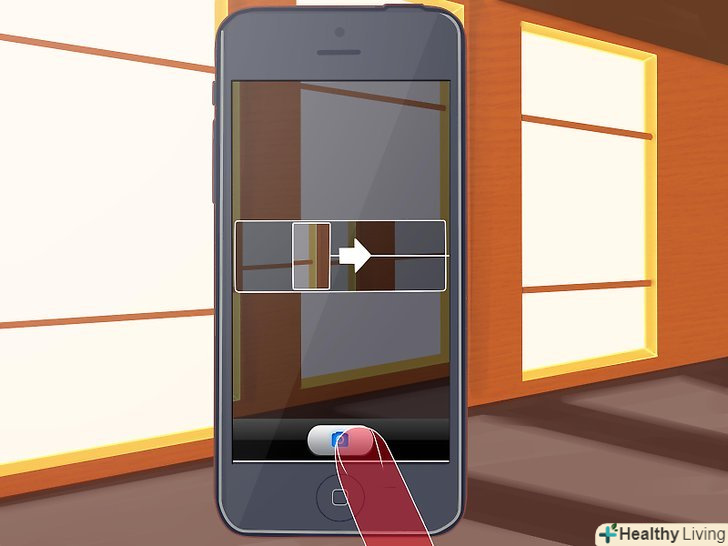 Торкніться кнопки "Панорама" (Panorama).цим ви активуєте режим панорами, у видошукачі з'явиться бігунок. Торкніться кнопки "Панорама" (Panorama).цим ви активуєте режим панорами, у видошукачі з'явиться бігунок.