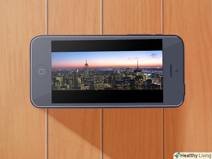 Подивіться знімок.після завершення процесу, панорамний знімок буде доданий в папку Camera Roll. Ви можете поділитися знімком, редагувати його так само, як і звичайні знімки. Щоб панорама вийшла ще повніше, поверніть телефон горизонтально. Подивіться знімок.після завершення процесу, панорамний знімок буде доданий в папку Camera Roll. Ви можете поділитися знімком, редагувати його так само, як і звичайні знімки. Щоб панорама вийшла ще повніше, поверніть телефон горизонтально.