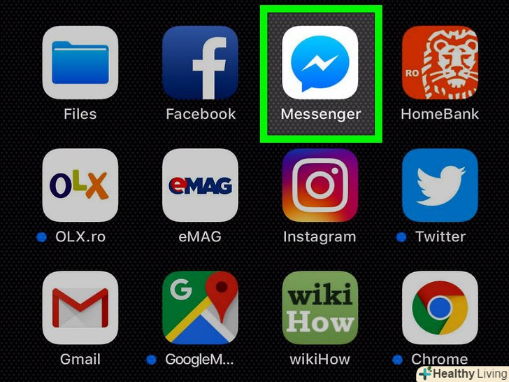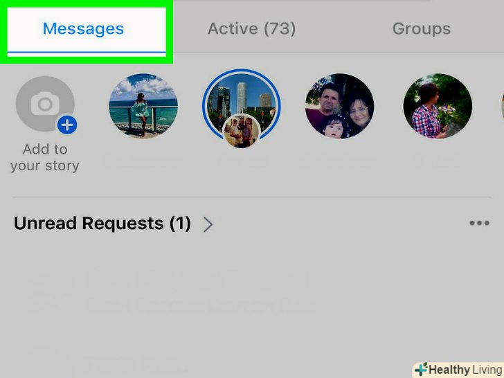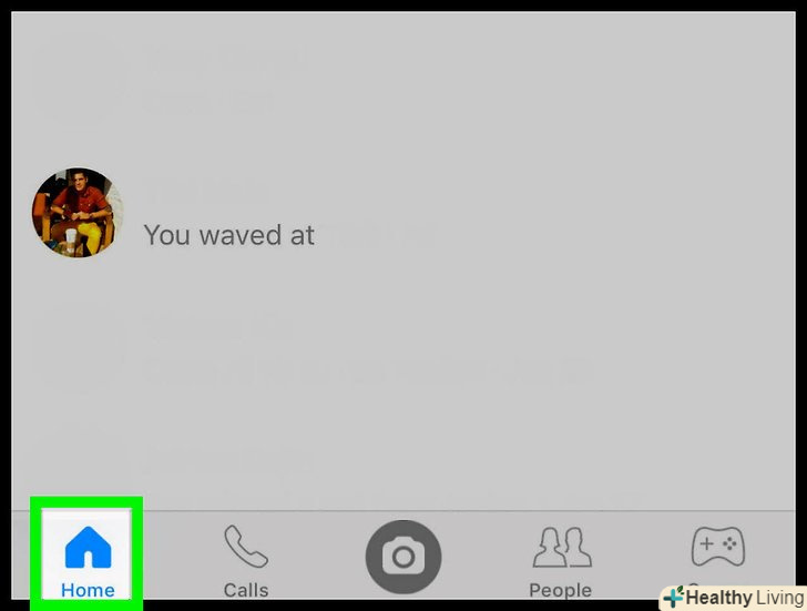 Переконайтеся, що ви перебуваєте на вкладці «Головна».якщо в Facebook Messenger відкрилося листування, натисніть кнопку «Назад» у верхньому лівому кутку екрану, щоб повернутися на вкладку «Головна». Переконайтеся, що ви перебуваєте на вкладці «Головна».якщо в Facebook Messenger відкрилося листування, натисніть кнопку «Назад» у верхньому лівому кутку екрану, щоб повернутися на вкладку «Головна».- Якщо в Messenger відкрилася інша вкладка (наприклад, «Люди»), торкніться значка у вигляді будиночка, який знаходиться в лівому нижньому кутку екрану.