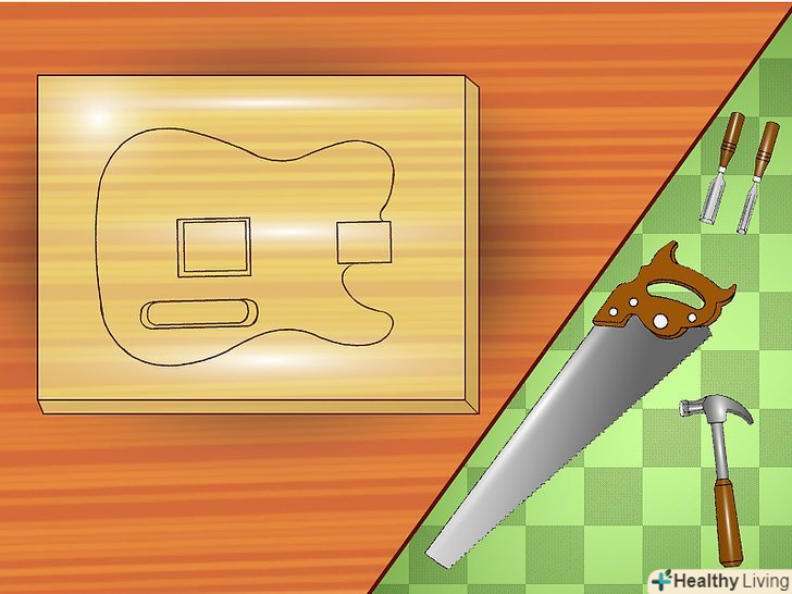 Корпус гітари.щоб зробити гітару, вам знадобиться корпус. Корпус є найважливішою частиною гітари. Без нього не було б ні струн, ні звукознімачів, ні самого звуку. Якщо у вас є гітара, ви можете використовувати готовий корпус. Однак, якщо ви хочете, щоб ваша гітара відрізнялася, вам потрібно буде зробити корпус вручну з дерева. Тип дерева і його щільність впливає на тон і сустейн (як довго звучить нота). Вибравши дерево, накресліть корпус на шматку і виріжте його. Заготовки корпусу з екзотичного дерева, такого як болотний ясен і махагоні, можна замовити на спеціальних ресурсах для складання гітар, наприклад stewmac.com. отримавши корпус потрібної форми, вам потрібно зробити в ньому порожнину для грифа. Існує три види кріплення грифа: на болтах, вклеєний (виглядає витонченіше, але не так універсальний), і наскрізний (гриф проходить через весь корпус гітари).
