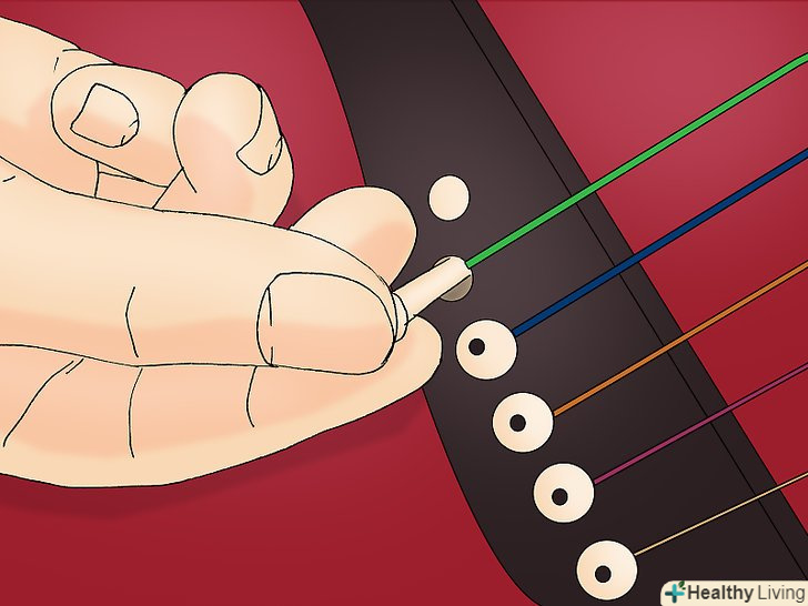 - Візьміть фіксатор пальцями і з зусиллям витягніть. Якщо ви використовуєте металеві інструменти для витягування, оберніть їх чимось м'яким, щоб не пошкодити фіксатор. Можна також трохи розгойдати фіксатор. У музичних магазинах можна зустріти в продажу недорогий інструмент для витягування фіксаторів.