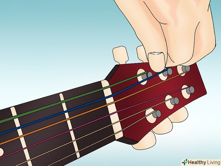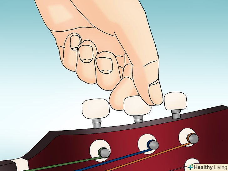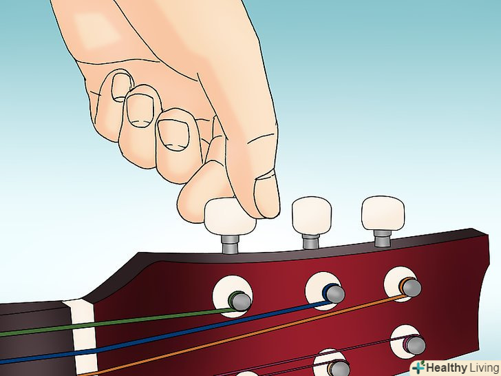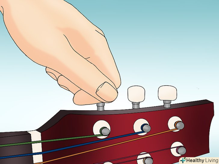 Послаблюйте натяг струни, повертаючи колок.переконайтеся, що звук струни стає нижче. Якщо він стає вище, значить ви крутите в зворотну сторону. Продовжуйте послаблювати струну, поки вона буквально не почне падати з гітари.