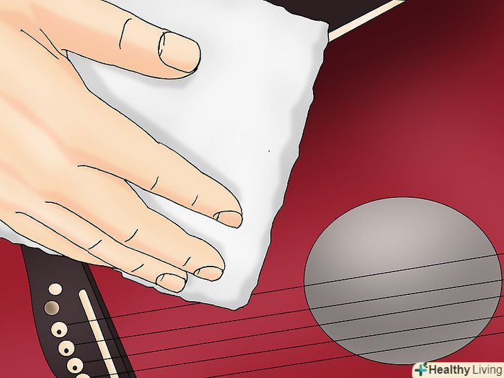 Ганчіркою протріть і відполіруйте раніше недоступні (під струнами) місця.чисту і красиву гітару приємно тримати в руках і не соромно показувати іншим.