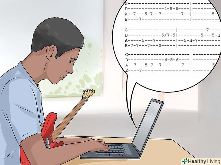 Навчіться читати і грати басові табулатури.пошукайте в Інтернеті табулатури для початківців.