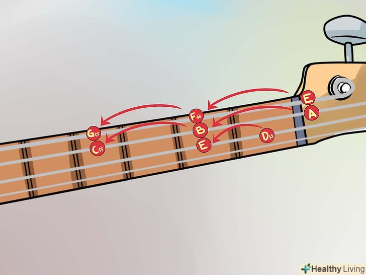 Вивчіть перші п'ять нот для самої верхньої струни, почавши з відкритої струни: (E) F F# G A. зробіть це для струн A, D і G.