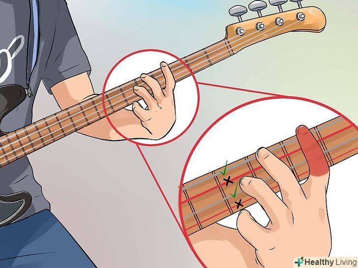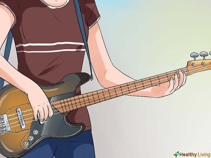 Приготуйтеся до гри.розмістіть обидві руки на басу, і знайдіть найбільш зручне для вас положення лівої руки, ближче до початку грифа. Розмістіть вказівний палець на першому ладу, а інші пальці на кожному наступному ладу відповідно.