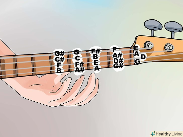 Навчіться налаштовувати бас-гітару.в якості стандарту використовуйте тон камертона або тюнера. Бас налаштовується наступним чином: E A D G, де E є найнижчою нотою, а G – найвищою. Налаштування бас-гітари дуже схоже на налаштування гітари.