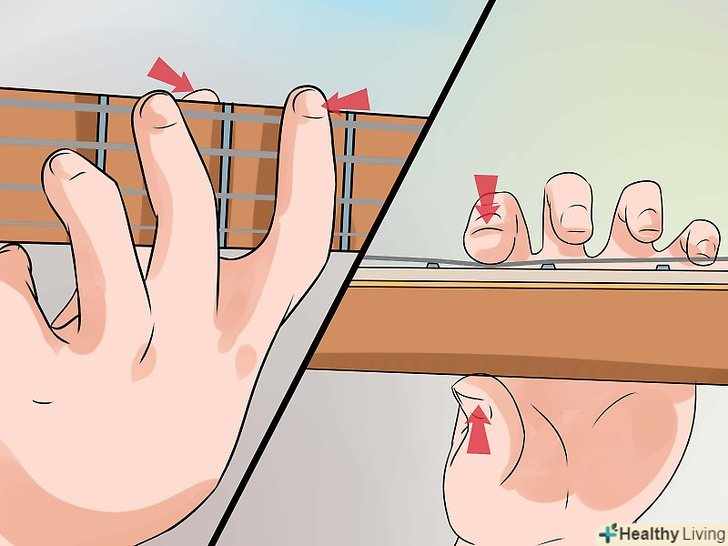 Навчіться добре притискати струни лівою рукою, щоб при звуковидобуванні правою рукою нота звучала чітко.уникайте деренчання і призвуків, які з'являються при слабкому притисканні струни.