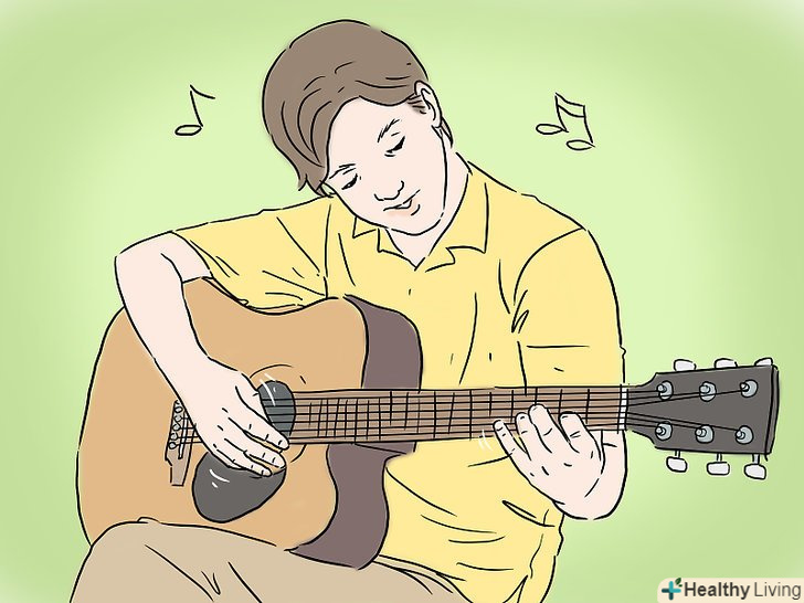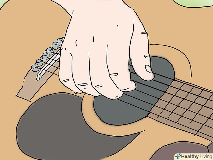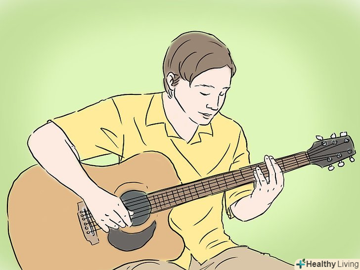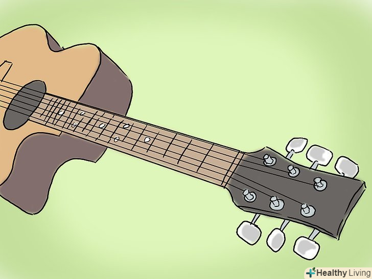 Налаштуйте вашу гітару.перш ніж почати грати, ви повинні переконатися, що ваша гітара налаштована. Якщо гітара не налаштована, то ваша музика не буде приємною. Навіть якщо ви купуєте абсолютно нову гітару, ви повинні завжди переконатися, що вона налаштована.- Щоб налаштувати гітару, обертайте кілки на голівці грифа гітари. Вони змінюють натяг струн, що змінює висоту звуку.