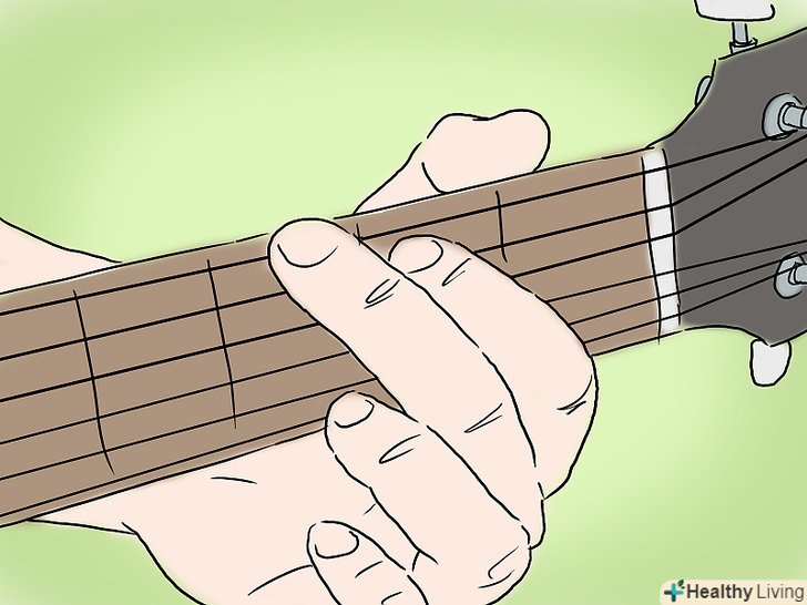 - Утримуйте гриф гітари так, щоб він лежав на вашому великому пальці. Ваші пальці повинні лежати на поверхні грифа.
