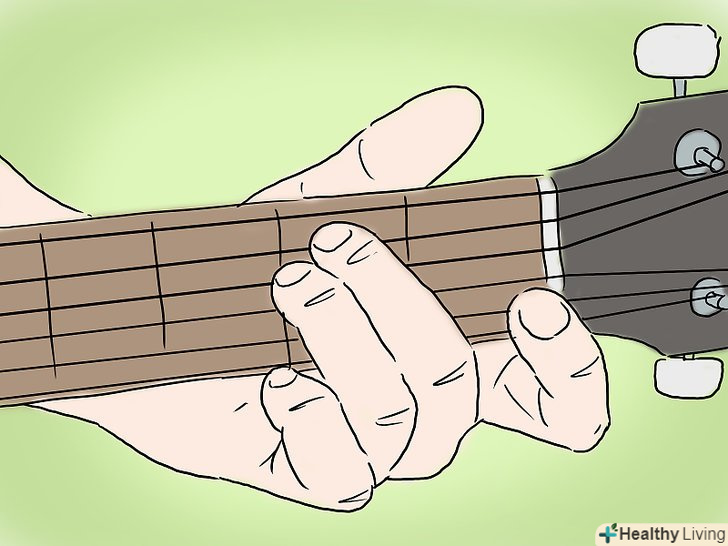 Вивчіть до мажор. грайте до-мажорний акорд, поміщаючи ваш вказівний палець на струну Сі на першому ладу, середній палець на струну ре на другому ладу, безіменний палець на струну ля на третьому ладу.