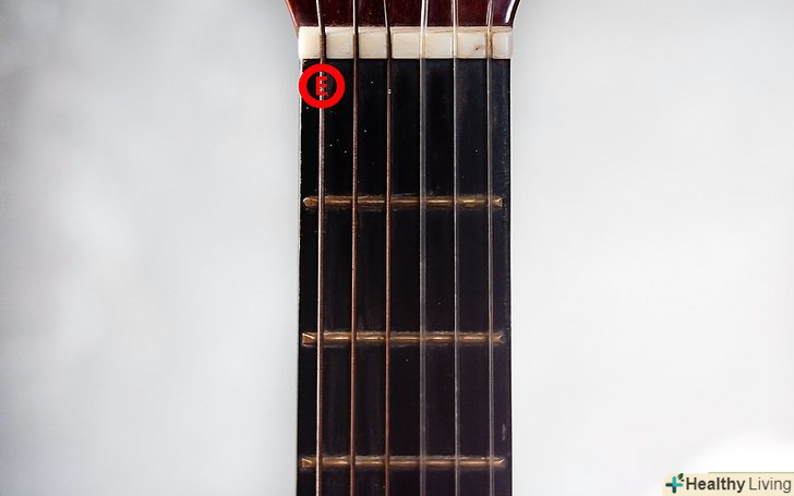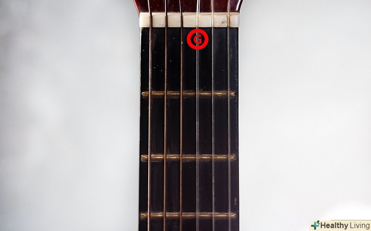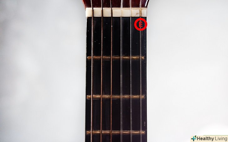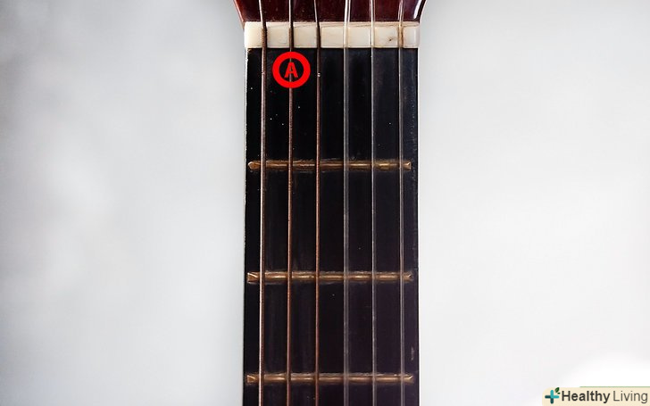 Перш за все необхідно почати зі струн. Всього їх шість. Вони вважаються від нижньої до верхньої, від основи до вершини, з найтоншою першої струни. Кожна струна має відповідну букву або ноту. (Див.) Ви можете легко запам'ятати їх за допомогою лічилки, яку застосовують Російські вчителі гри на гітарі: "Мі-Сі-соль-ре-ля-Мі".- 1 Струна-Ми (E)