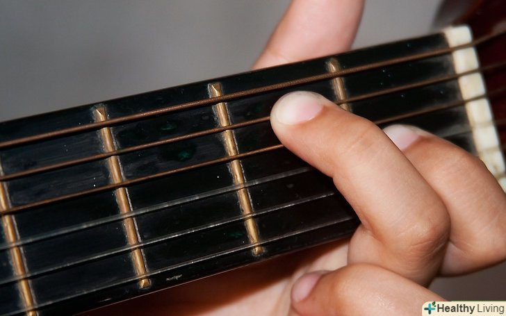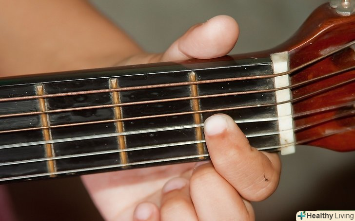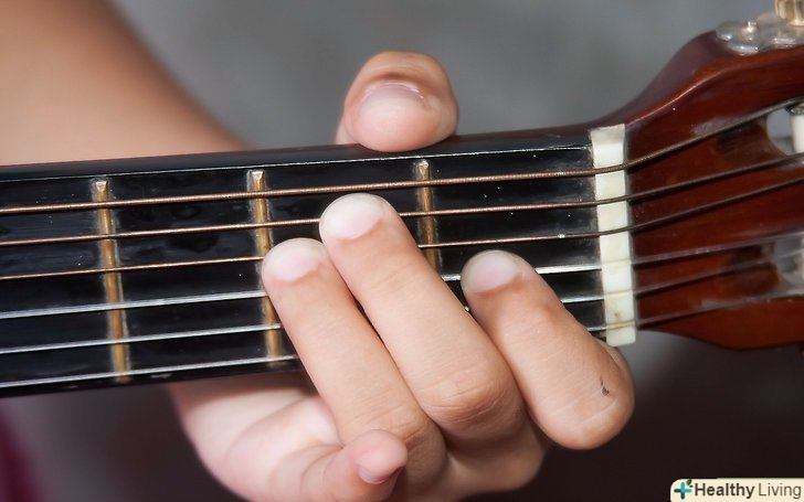 - Найкращий спосіб вивчити цей акорд ( та інші основні гітарні акорди) - це запам'ятовувати положення пальців на грифі. Таким чином ви зможете швидше змінювати різні акорди. Ви можете тренуватися, затиснувши потрібні струни, потім, прибираючи руку, Зберігайте те ж положення пальців, як ніби-то ви продовжували тиснути на ці струни. Продовжуйте до тих пір, поки положення пальців не закріпиться в пам'яті.