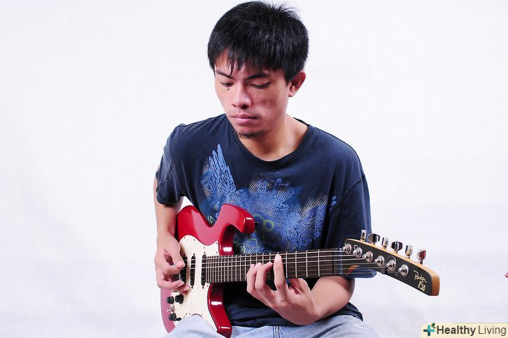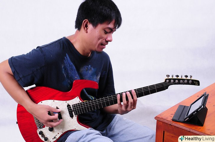 Коли ви пристосуєтеся, спробуйте виконати ті ж вправу знову.однак, цього разу, спробуйте зробити це великим і вказівним пальцями. Можливо, вам здасться, що розтягувати пальці досить складно. Якщо для вас це занадто важко, то постарайтеся перемістити пальці вище по грифу, що б відстань між ладами стало менше. Замість того, щоб збільшувати швидкість метронома, перемістіть пальці нижче по грифу, щоб пальці розтягнулися.