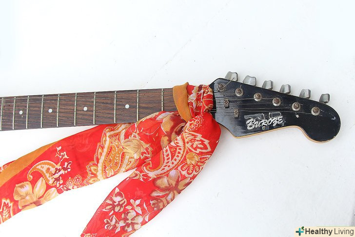 Повісьте що-небудь на голову гітари.Джеррі Гарсія іноді вставляв троянду між струн в голові своєї гітари, а різноманітні маленькі прикраси, що звисають з голови або зі струнотримачів Гітари, можуть виглядати досить круто.- Спробуйте взяти кілька стрічок або красиві обривки тканини, обернути їх під струнами на голові і міцно зав'язати.