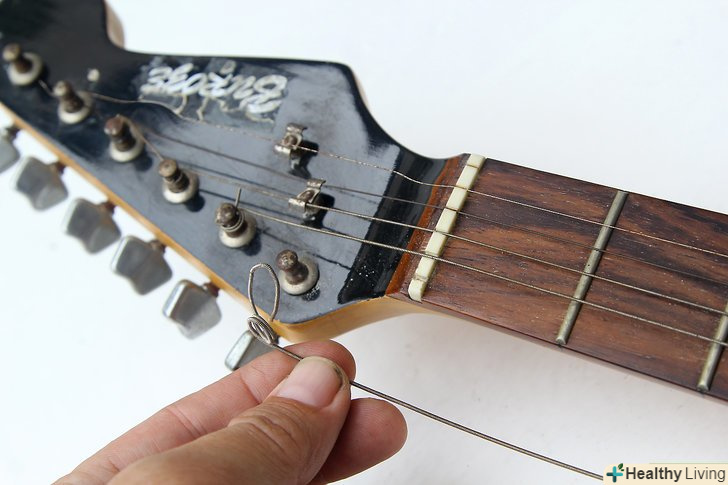 - Оберніть пару струн між струнотримачем і ременем гітари, щоб утримати її на місці.
