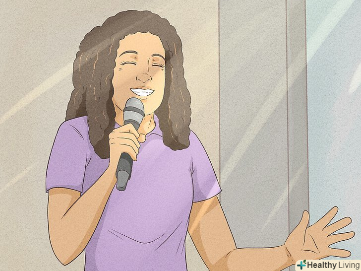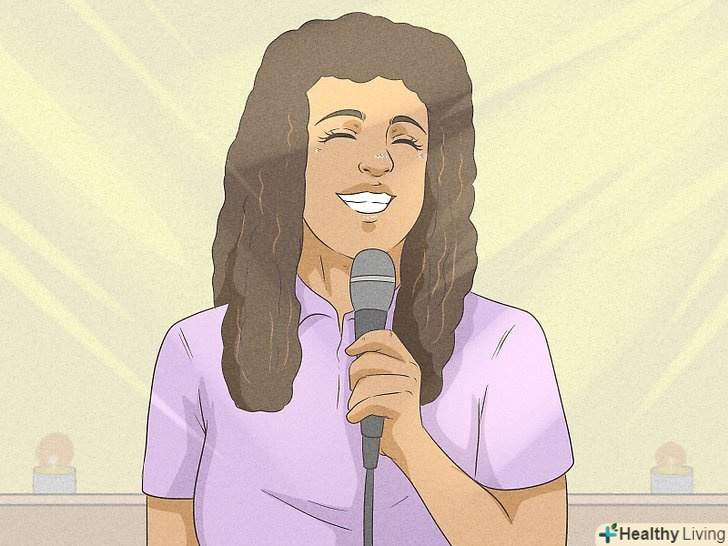 Розслабтеся і поводьтеся впевнено.якщо ви напружені і не впевнені в собі, то цей факт не вислизне від слухачів. Ведіть себе спокійно, радісно і впевнено, ніби збираєтеся оголосити щось важливе. Так слухачі вважатимуть вас смішним.[7]
