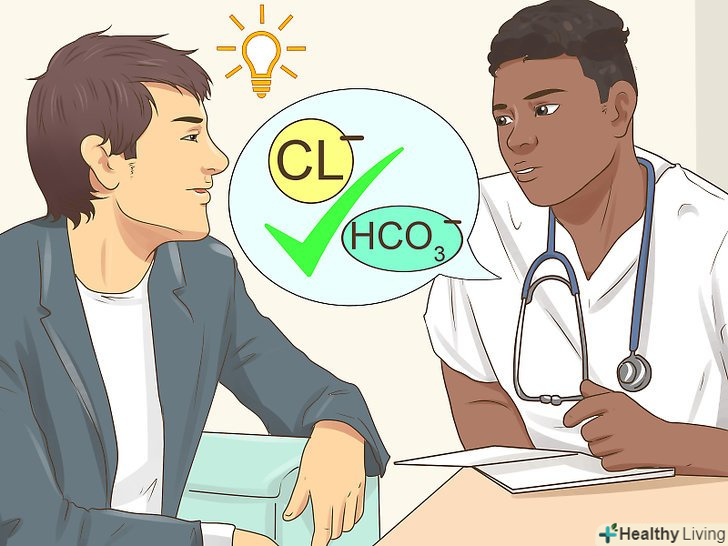 Знайте як розшифровуються результати. лікар зіставить результати діагностики з вашим зовнішнім виглядом, відчуттями і симптомами, про які ви повідомляєте. Коли результати отримані і є остаточними ваш лікар повинен повідомити вас про те, які будуть наступні кроки. Якщо лікар вважає, що результати можуть бути помилковими, він може призначити додаткові дослідження для перевірки.- Скорочений аніонний проміжок може бути співвіднесений з різними факторами, такими як гіпоальбумінемія або отруєння бромистими сполуками. Такий результат вважається нормальним, якщо пацієнт виліковується від діабетичного кетоацидозу або відновлюється після втрати бікарбонатів через тривалу діарею.