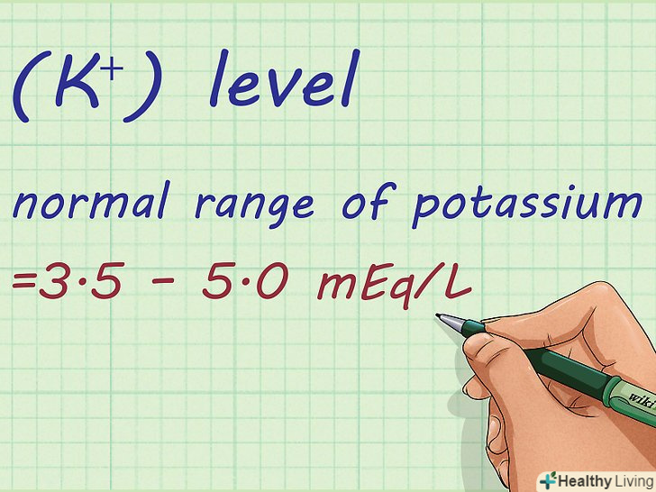 При необхідності визначте рівень калію. Нормальний діапазон калію 3.5-5.0 мекв/л.далі наведена формула, в якій немає необхідності використовувати рівень калію. Справа в тому, що калію (K⁺) в плазмі занадто мала кількість, щоб його враховувати.- Оскільки в нашій формулі не потрібно калій, ви можете пропустити цей крок.