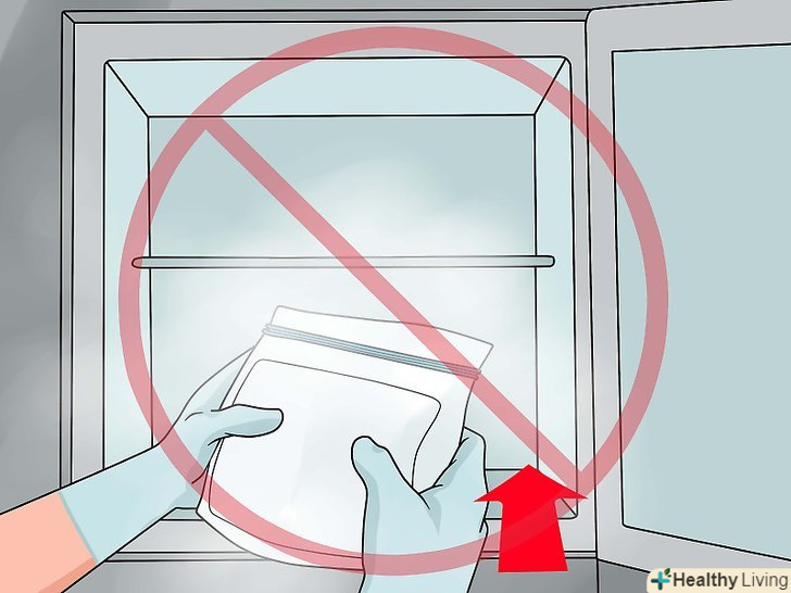 Не кладіть сухий лід в морозильну камеру.морозильна камера герметична, це може спровокувати розкол сухого льоду.[15] ще один важливий момент, якщо ви покладете сухий лід в звичайний холодильник або морозильну камеру, ви просто можете зіпсувати систему, так як термостат не призначений для витримування подібних температур.[16]