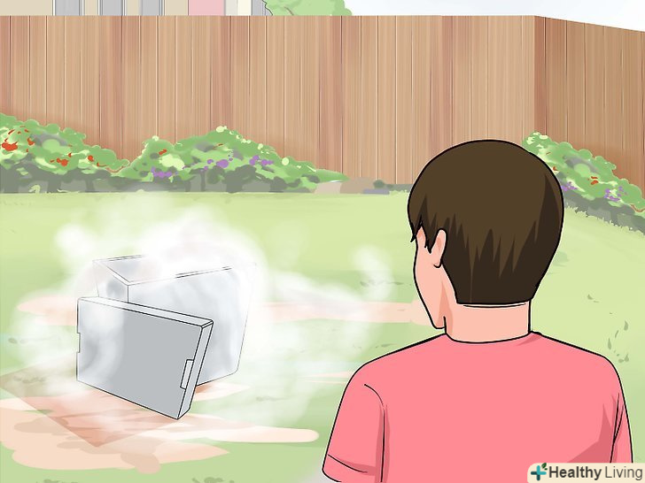Зберігайте сухий лід у провітрюваному приміщенні.через те, що сухий лід виділяє вуглекислий газ, він може стати небезпечним для людини в закритому просторі. У приміщення, де зберігається сухий лід, має надходити досить свіжого повітря. В іншому випадку люди і тварини відчують ознаки задухи.[12]- Пам'ятайте, що закрита машина є непровітрюваним приміщенням, особливо якщо потік повітря не надходить в машину. Не залишайте сухий лід у припаркованій закритій машині. Якщо ви перевозите сухий лід, відкрийте вікно або включіть Кондиціонер, щоб в машину надходило свіже повітря. Більш того, відставте сухий лід подалі від себе вчасно транспортування.[13]