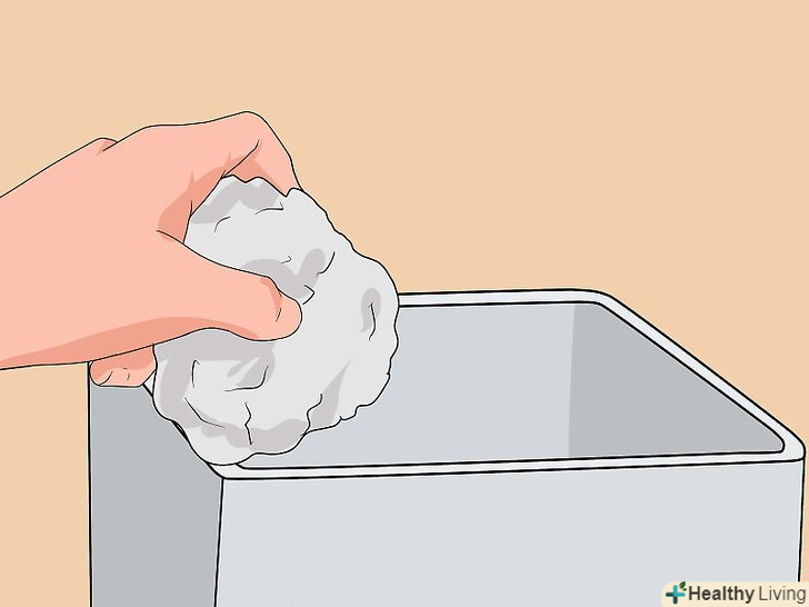 Додайте зім'ятий папір до контейнера.заповніть місце, що залишилося в контейнері зім'ятим папером. Це допоможе уповільнити процес сублімації, і скоротить порожній простір в контейнері. [8]