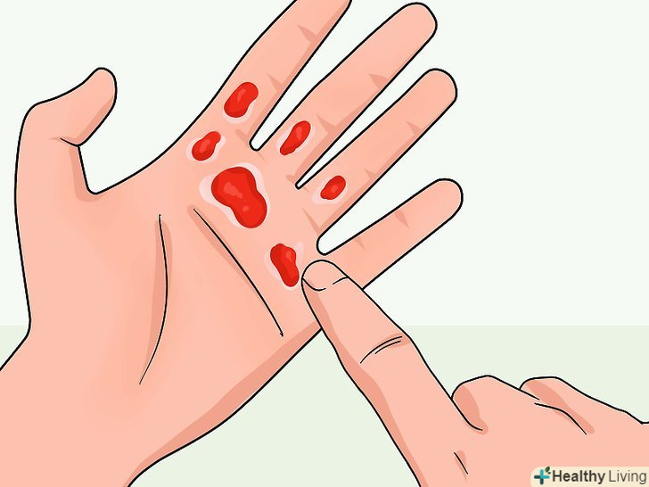 Зверніть увагу на опіки.якщо у вас легкий опік, на шкірі тільки почервоніння, він пройде сам по собі. Але якщо на шкірі утворився пухир, або шкіра стала сходити, ви повинні сходити до лікаря.[11]