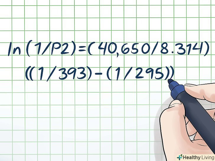 - Підставте константи в формулу і отримаєте: ln (1 / P2) = (40650/8314)((1/393) - (1/295)).