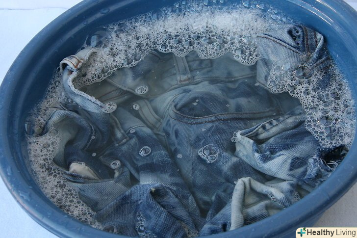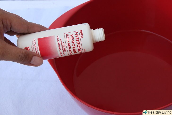 Заповніть невелике відро або велику миску розчином 1 частини перекису водню на 10 частин води.замочіть тканину в розчині протягом 10 хвилин. Ви також можете змочити тканину в розчині з 1 частини засобу проти хлору і 1 літра води.