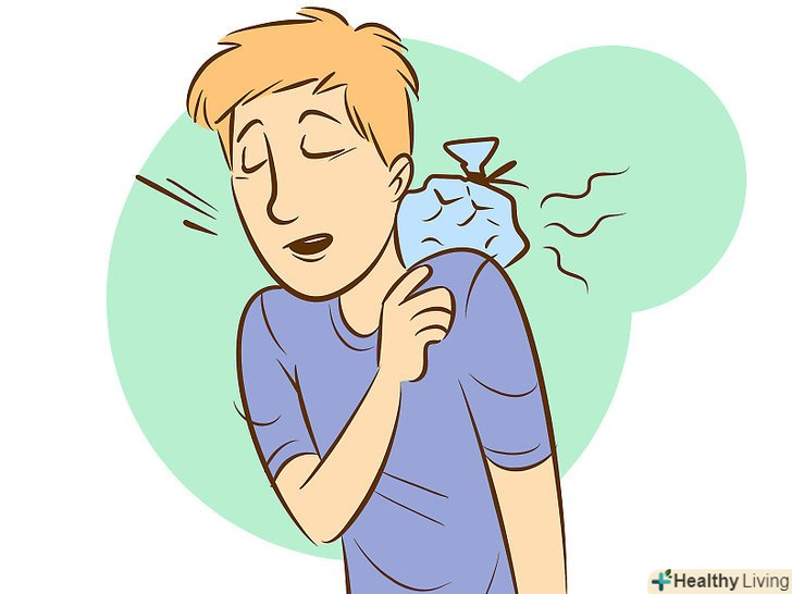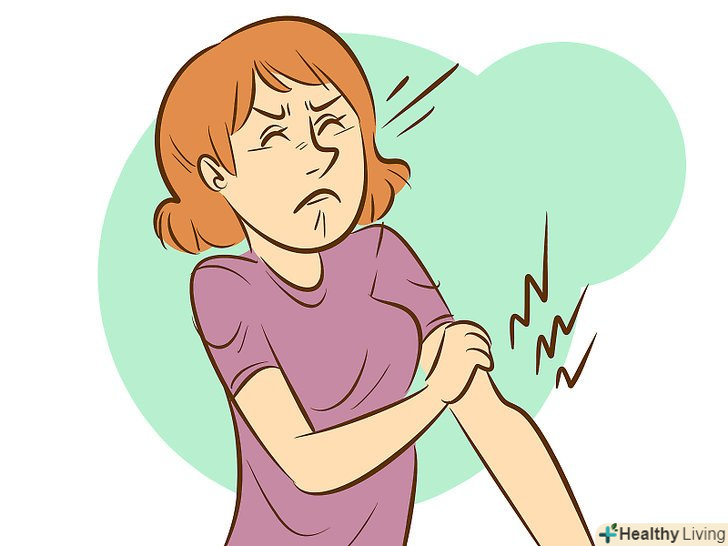 Дійте так, як ніби біль стає сильнішою при русі.реальна напруга або розтягнення зв'язок залишають враження того, що у вас тільки що була дуже інтенсивна, але «невдала» тренування. Оскільки ваше тіло відновлює пошкоджену зв'язку, сухожилля або м'яз, то область навколо пошкодження буде хворіти від будь-якого виду подразників, навіть від простого переміщення. Таким чином, якщо ви будете імітувати це, ви повинні імітувати біль і жорсткість кожного разу, коли рухаєте ту частину спини, яку пошкодили.[2]- Наприклад, якщо ви маєте справу з підробленим розтягуванням зв'язок верхньої частини спини, при виконанні наступних рухів, ви повинні приймати страждальницьке вираз обличчя, морщитися і діяти так, ніби ви не володієте нормальною гнучкістю: