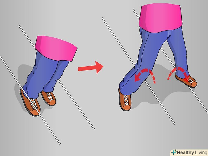 - Стрибніть так, щоб одна нога виявилася на гумці, а інша за її межами.