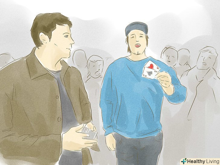 Ігноруйте людей, які намагаються відвернути увагу натовпу. якщо хтось перериває вас під час трюку або намагається вигукувати свої здогади, то вони, мабуть, хочуть здаватися крутіше вас. Є кілька способів, щоб впоратися з такими людьми. Ви повинні вирішити, якими з них користуватися в залежності від ваших особистих переваг і ситуації. Ось метод, який вимагає найменших Коригувань вашого виступу:[8]