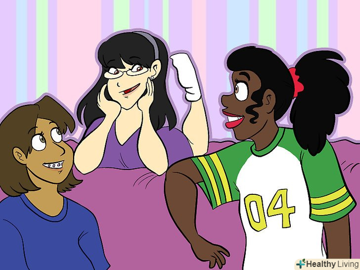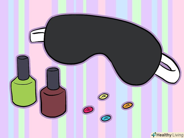 Влаштуйте вечірку щоб побалувати себе.Принесіть маленьку сумочку з лаком для нігтів, манікюрні Стрази, маски для обличчя і все, що хочете взяти.