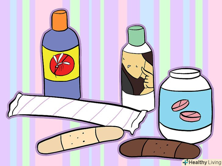 Візьміть з собою невелику сумочку з медичним приладдям (за бажанням).хоча у батьків вашого друга вдома гарантовано є медикаменти, звичайно ви можете принести ваші власні! Потрібні: пластирі, знеболюючі (переважно парацетамол), Додаткові прокладки / тампони, засоби від укусів комах, інгалятор (при необхідності), антисептичні серветки, прітівовоспалітельний крем, крем від прищів і інші необхідні засоби.