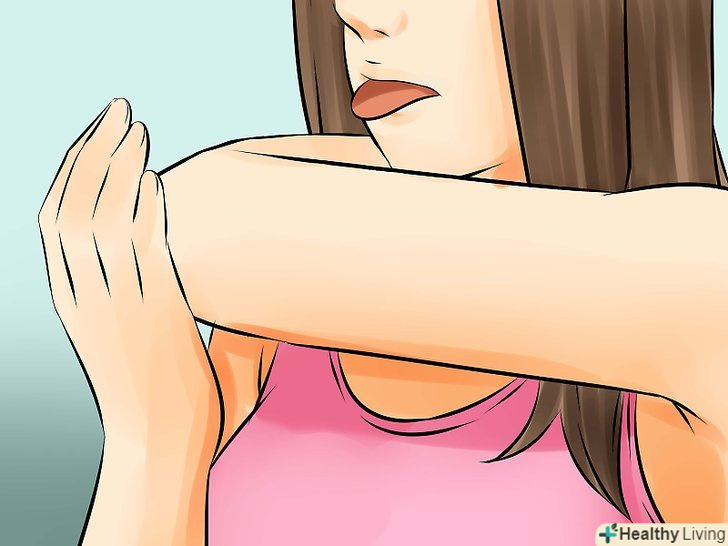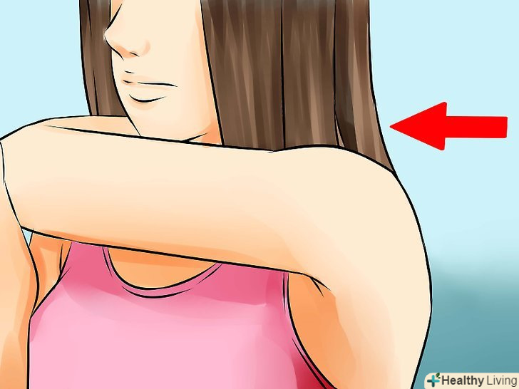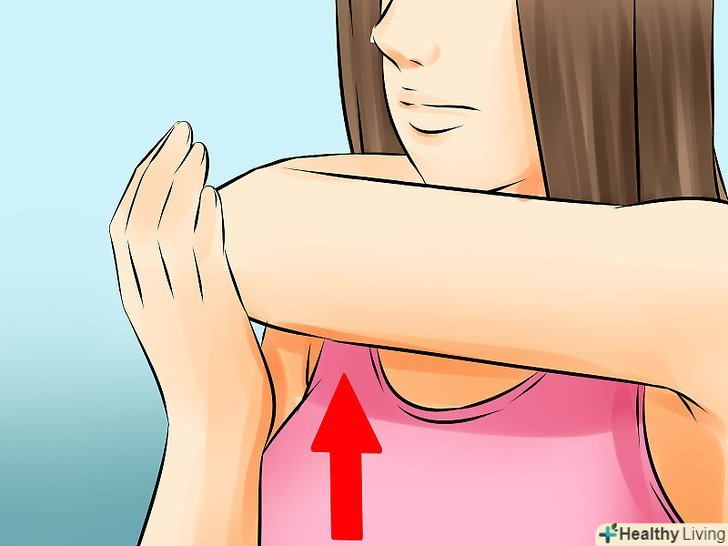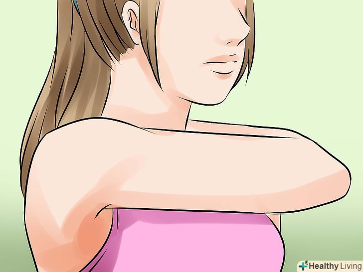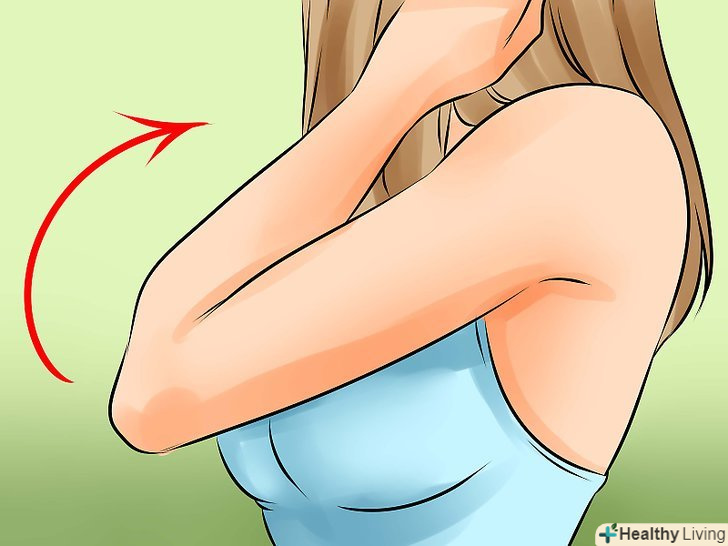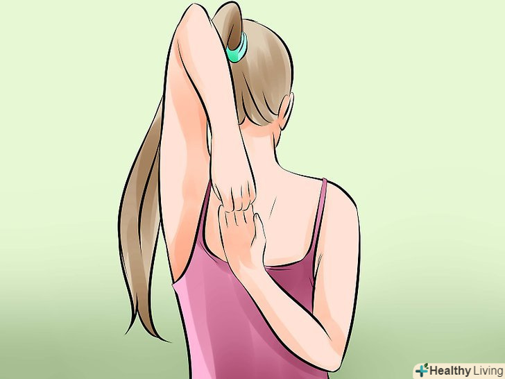 Розтягуйте плечі.Розробіть програму по розтяжці плечей, яка дозволить вам збільшити міцність і гнучкість лопаток. Якщо ваші м'язи напружені, ви не зможете дотягнутися до ліктя, навіть якщо у вас руки відповідної довжини і у вас язик Джина Сіммонса. Розтягуйте плечі.Розробіть програму по розтяжці плечей, яка дозволить вам збільшити міцність і гнучкість лопаток. Якщо ваші м'язи напружені, ви не зможете дотягнутися до ліктя, навіть якщо у вас руки відповідної довжини і у вас язик Джина Сіммонса.- Зігніть одну руку над головою, поклавши зап'ясті на верхівку. Другою рукою візьміться за лікоть, потягнувши його в протилежну сторону. Акуратно зафіксуйте руку в цьому положенні, дорахуйте до 15. Потім поміняйте руки.[2]