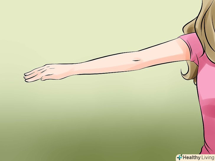 Витягніть вашу праву руку вперед долонею вниз.розслабте ваші плечі і руки. Не стискайте долоню в кулак. Витягніть вашу праву руку вперед долонею вниз.розслабте ваші плечі і руки. Не стискайте долоню в кулак.