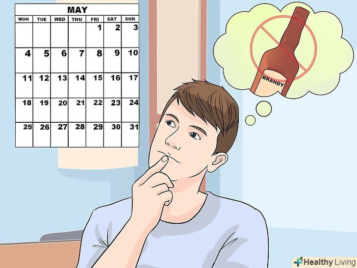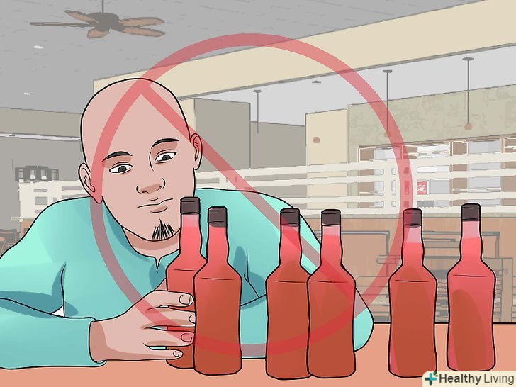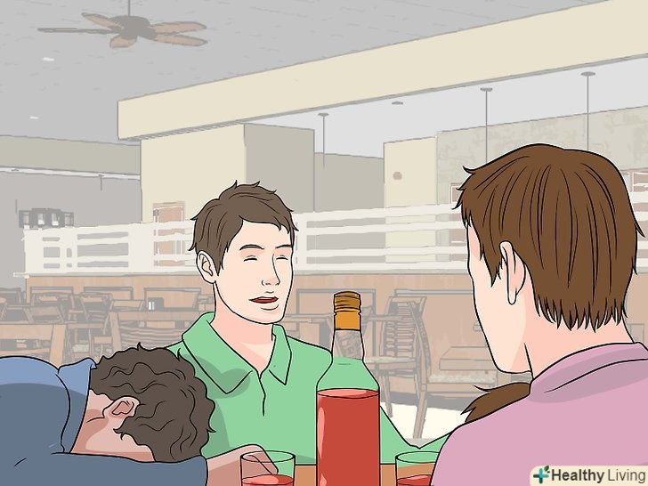 - Якщо ви переживаєте про те, що можете випити дуже багато або занадто швидко, спробуйте спеціально припізнитися в бар, на вечірку або в клуб, де призначена зустріч з друзями.[11] завдяки цьому у вас буде мало часу, і ви не зможете випити зайвого. Крім того, можна спробувати переключити свою увагу на безалкогольні напої. Це теж сприятиме тому, що ви не відчуєте неприємних наслідків, пов'язаних з тим, що вип'єте більше, ніж необхідно.