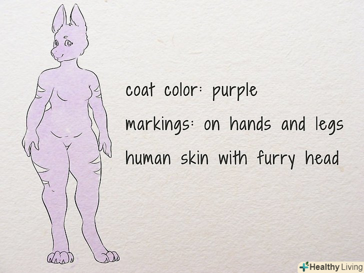 Подумайте, як буде виглядати ваша фурсона-наприклад, якою вона буде забарвлення, чи будуть у неї відмітини.схиліться до природного вигляду або зробіть його настільки божевільним, наскільки забажаєте. Ваша фурсона може бути будь-якою, від просто сірого вовка до бірюзового Фенікса або жовтого комодського варана з червоними смужками і чорним хвостом. У неї можуть бути татуювання, пірсинг, ділянки хутра/пір'я/луски/шкіри різного кольору і навіть кілька хвостів! Подумайте, як буде виглядати ваша фурсона-наприклад, якою вона буде забарвлення, чи будуть у неї відмітини.схиліться до природного вигляду або зробіть його настільки божевільним, наскільки забажаєте. Ваша фурсона може бути будь-якою, від просто сірого вовка до бірюзового Фенікса або жовтого комодського варана з червоними смужками і чорним хвостом. У неї можуть бути татуювання, пірсинг, ділянки хутра/пір'я/луски/шкіри різного кольору і навіть кілька хвостів!