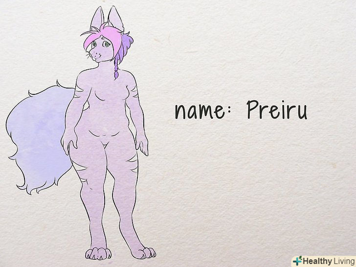 Придумайте своїй фурсоні ім'я.це може бути ваше власне ім'я або будь-яке, яке ви вважаєте цікавим. Уникайте назв тварин або варіацій на їх тему, так як вони занадто поширені і багато людей вже використовують такі імена. Хороша думка-ввести вибране ім'я в Google і подивитися, чи користується ним вже хто-небудь із спільноти фуррі. Придумайте своїй фурсоні ім'я.це може бути ваше власне ім'я або будь-яке, яке ви вважаєте цікавим. Уникайте назв тварин або варіацій на їх тему, так як вони занадто поширені і багато людей вже використовують такі імена. Хороша думка-ввести вибране ім'я в Google і подивитися, чи користується ним вже хто-небудь із спільноти фуррі.