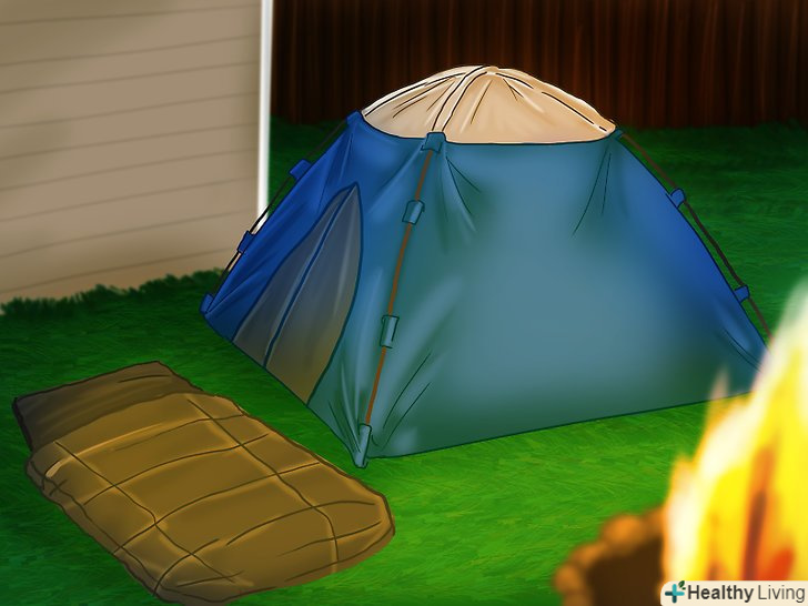 Організуйте сон під відкритим небом на задньому дворі.Візьміть спальний мішок і спите під відкритим небом, милуючись зірками. Розповідайте страшні історії. Ви можете сказати, що білки-це небезпечні тварини. Приготуйте на барбекю десерт, який складається з підсмаженого маршмеллоу і шоколаду, прошарених між двома крекерами. [15]- Якщо у вас немає заднього двору, влаштуйте уявний нічліг» на вулиці " - прямо у вітальні. Встановіть намет або зробіть халабуду. Уявіть, що ви в лісі. Позитивним моментом буде те, що вас не будуть турбувати комарі і комахи.