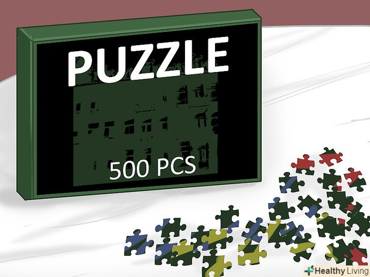 Збирайте пазли.ви можете придбати пазли в магазині іграшок або в магазині, де продаються Дешеві товари, якщо вам подобаються такого роду заняття. Спробуйте зібрати пазл, в якому більше 500 штук. Якщо ви хочете ускладнити собі завдання, виберіть пазл із зображенням, яке має схожі кольори і форми, наприклад, поле трави. Чим менше фрагментів, тим складніше пазл.