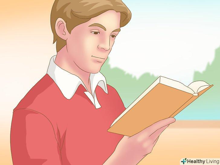 Почитайте книгу.Візьміть книгу, газету або журнал. Виділіть час, щоб дізнатися про те, що відбувається в світі або ближче познайомитися з деякими відомими літературними персонажами. Дуже часто початок книги може здаватися нудним і не цікавим, проте ближче до середини, вам складно буде від неї відірватися.[2]- Беріть з собою книгу, куди б ви не йшли.