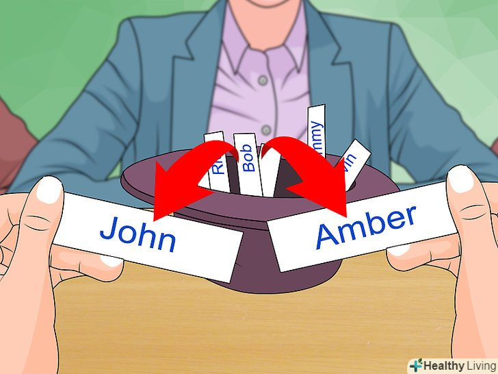 - Якщо ви вибираєте людину за допомогою Імен в капелюсі, можна зробити один контейнер для жіночих імен, інший - для чоловічих. У кожен раунд гри можна вибрати по одному імені з кожного контейнера.