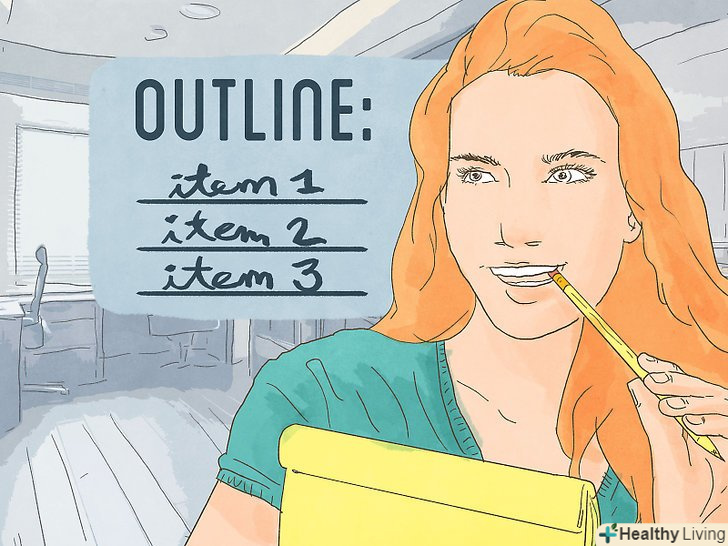 Накидайте план.тепер прийшов час паперу і ручки або комп'ютера. Ви знаєте ключову думку скетча, і зараз потрібно накидати план: як ви почнете, про що будете говорити, які жарти будуть основними і як ви закінчите виступ.[6]- Багато авторів пишуть скетчі задом наперед. Якщо у вас є відмінна кінцівка (наприклад, фраза про те, що доросла людина боровся з плюшевим ведмедем в магазині іграшок), почніть писати звідси і придумайте, що могло привести до цього. Можливо, людині не сподобалося, як ведмідь "дивився" на нього, коли той проходив повз, щоб купити подарунок на день народження дочки. Можливо, людина сильно втомлюється на роботі, і у нього була потреба сильно вдарити що-небудь. Можливо, ведмідь нагадав йому про когось, кого він ненавидить. Дозвольте своїй уяві домалювати історію.[7]