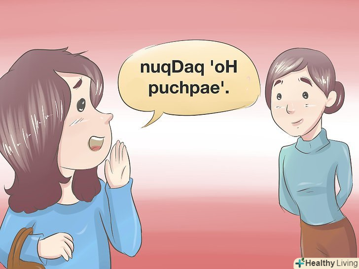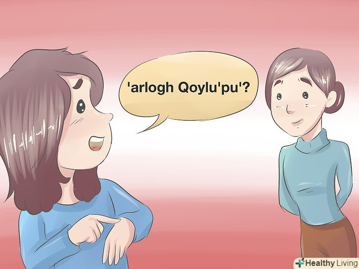 Покажіть, що ви один з клінгонів запальної " tlhIngan maH!" Фраза перекладається як " ми-клінгони!"Або ви можете сказати" tlhIngan jIH "(я-клінгон).